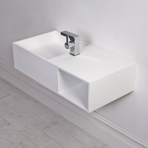 Solid Surface Corian Stone Wall Hung Basin With Storage Room Images |